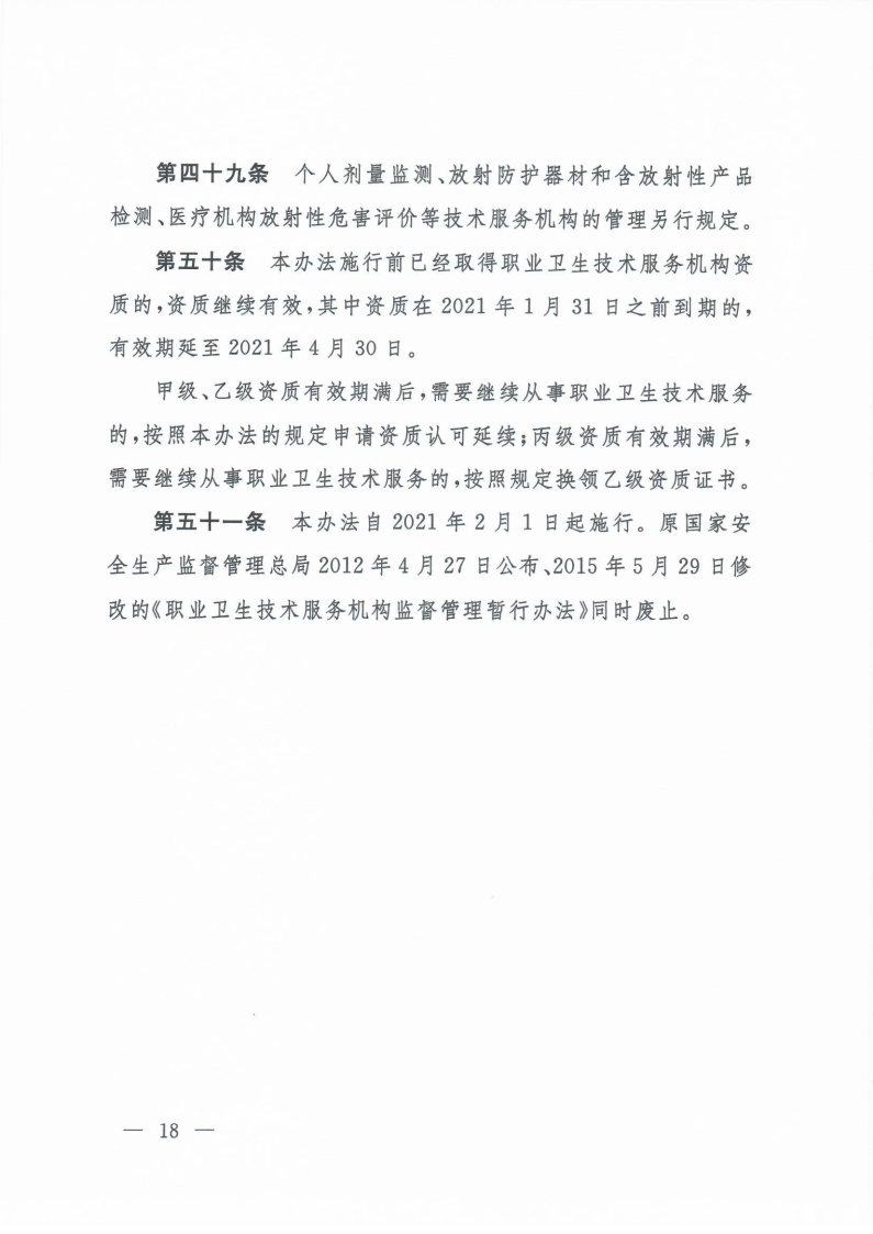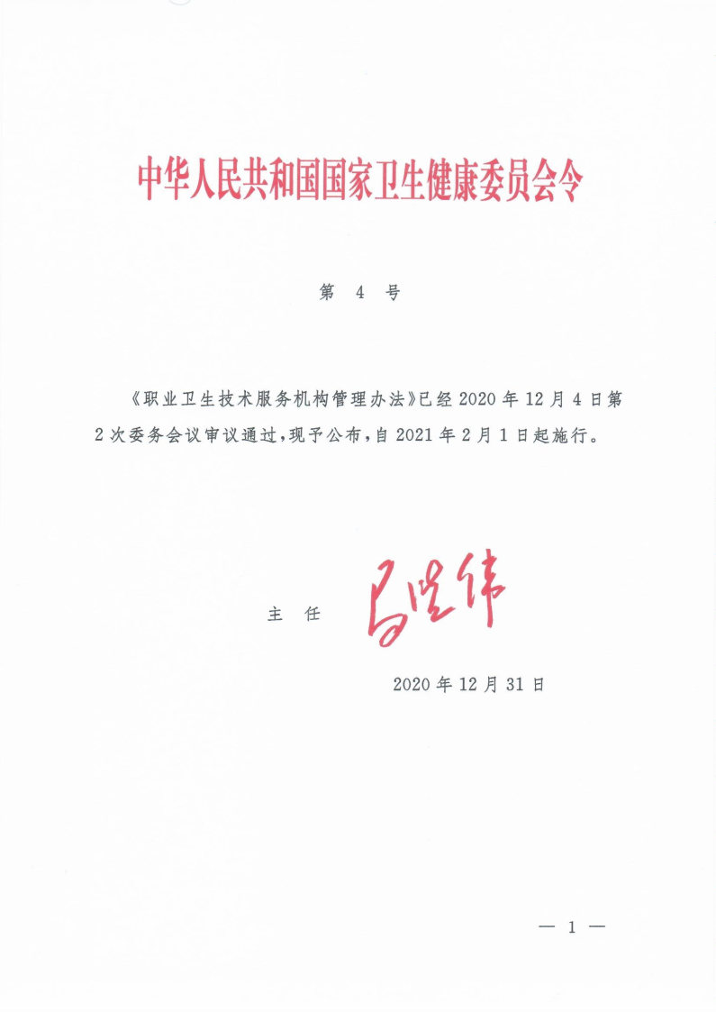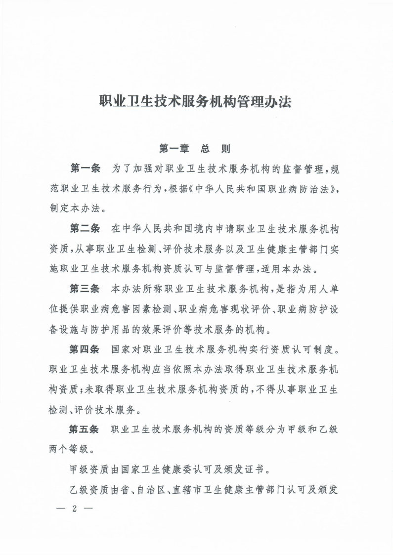 職業(yè)衛(wèi)生技術服務機構(gòu)管理辦法(國家衛(wèi)生健康委令第4號)